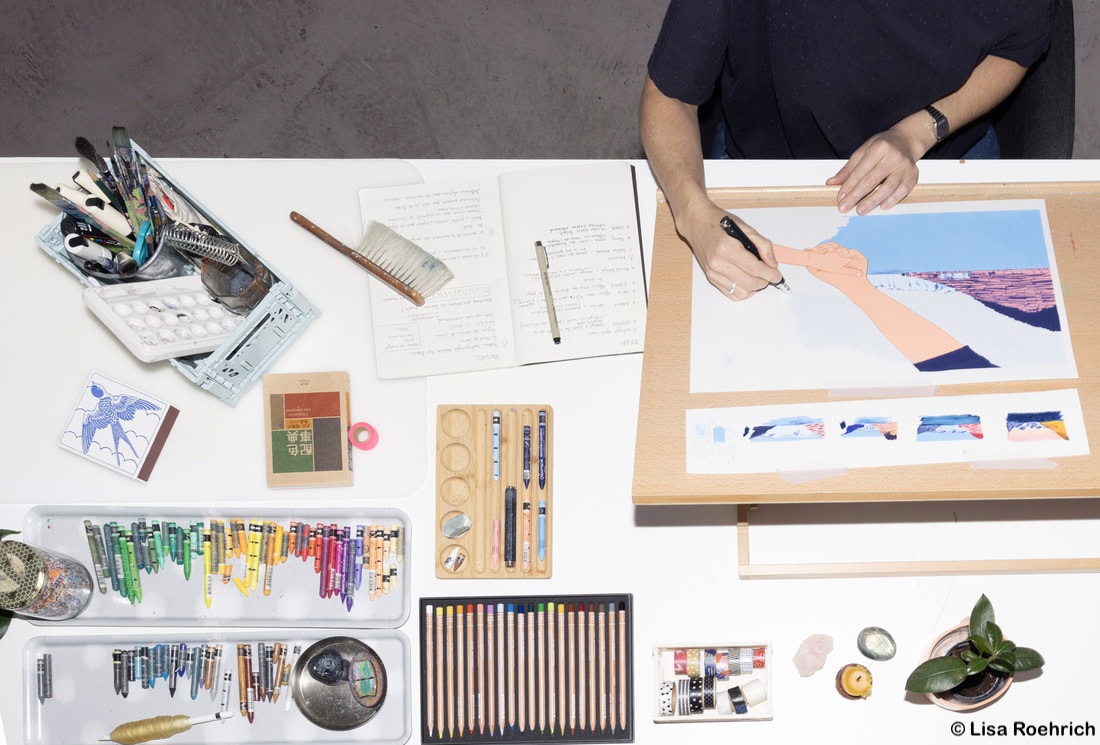 Elle est l’autrice et la dessinatrice du livre de voyage « Curry, kiwis et caïpirinha » édité par Hélice Hélas, a illustré le livre pour enfant « Petite Main et Grande Main » aux éditions Helvetiq et s’apprête à publier une BD sur l’exploratrice Ella Maillart.
