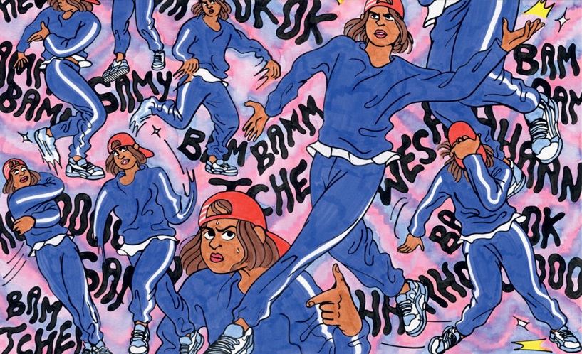 Autrice de bande dessinée, footballeuse, passionnée (pour ne pas dire matrixée) par les récits de vie en banlieue. Je dessine et raconte des histoires de fiction, à partir du réel. J’aime écrire des trajectoires de jeunes gens en proie aux injonctions productivistes et sexistes de la société, qui cherchent à s’émanciper de certains schémas, et où l’environnement urbain façonne en grande partie leur comportement. Les personnages qui peuplent mon univers sont en quête de chemins alternatifs, ils et elles sont en mouvement, en résistance avec l’assignation aux rôles de genre ou de classe, désireux.ses de prendre part au monde, pour tenter de saisir la portée de leur existence.