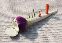 Ces musiques du jour sont composées avec les sons étranges et évocateurs des primeurs. Batterie de fruits et légumes frais, carottes électriques, chants de l’endive et expressivité du poireau, sont quelques uns des éléments d’une cuisine musicale qui joue aux palais de nos oreilles une performance vivante où ce que l’on voit, goutte et entend, titille les tympans de notre mémoire.